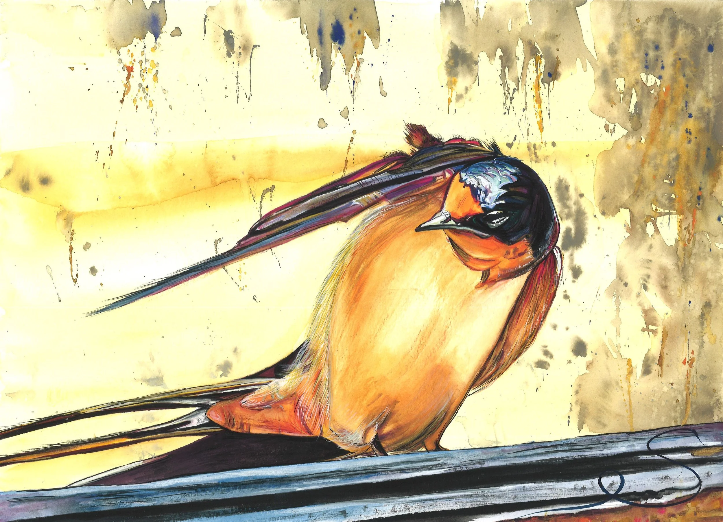Barn Swallow Gouache paint with gold accent on 11x15 watercolor paper. Copyright 2023 Sarah Boyle Carmack