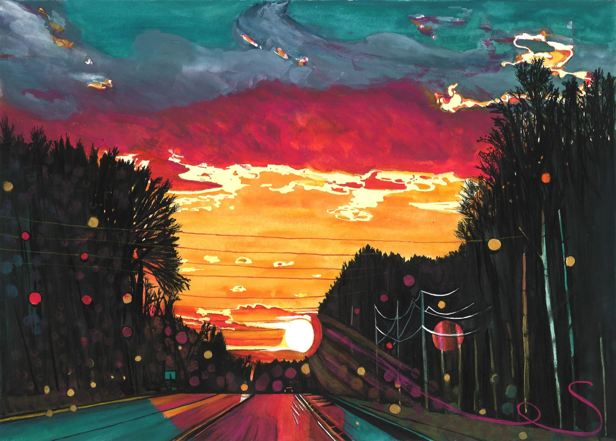 Gouache paint with gold accent on 11x15 watercolor paper.